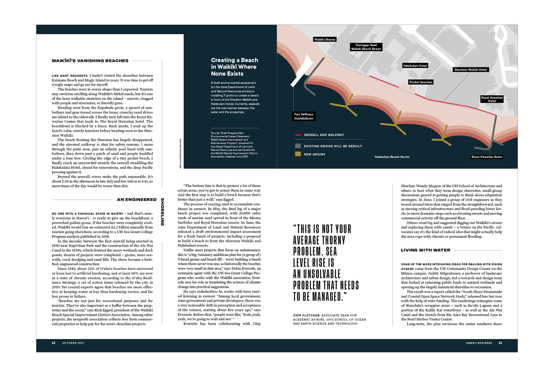 Hawaii Business Magazine, Oct 2021 Art Direction, Editorial Design, Map Infographics (p61,63,66)