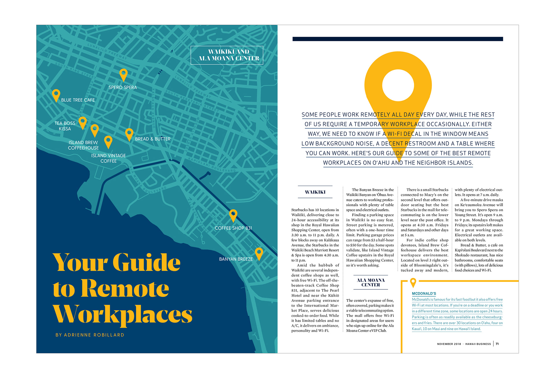 Hawaii Business Magazine, Nov. 2018. Art Direction, Editorial Design, Illustration